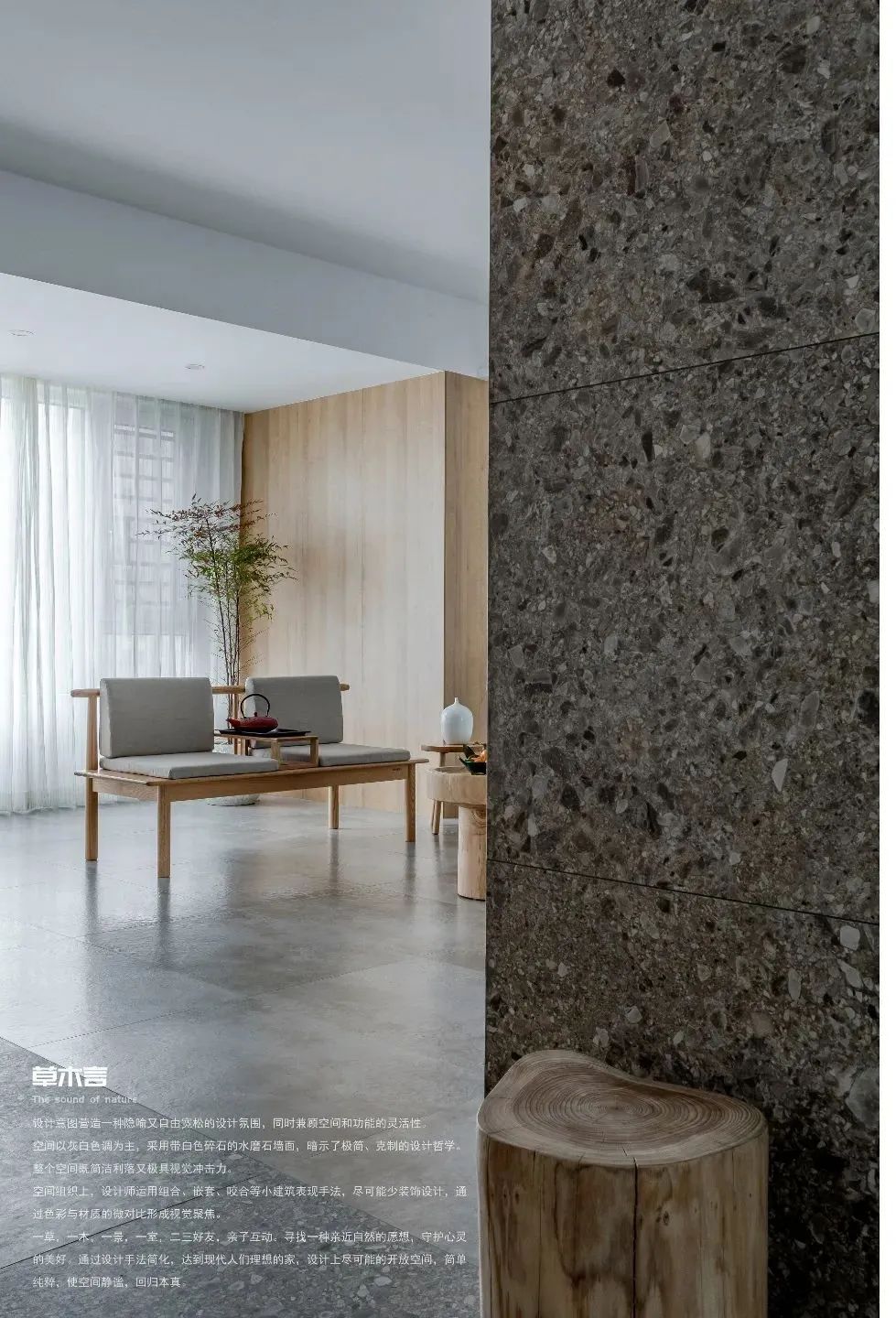 “隨著當代生活節奏加快,越來越多人向往寧靜舒緩的居家生活,當物質生活得到滿足后,精神的豐盈變得尤為可貴。”秦晨、陳鈴燁的獲獎作品《山澗冥想室》特別強調“空間與自然完美融合,給人帶來的身心體驗和美感。”