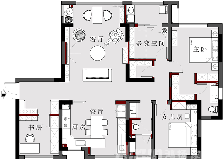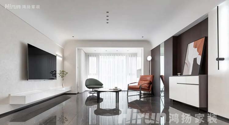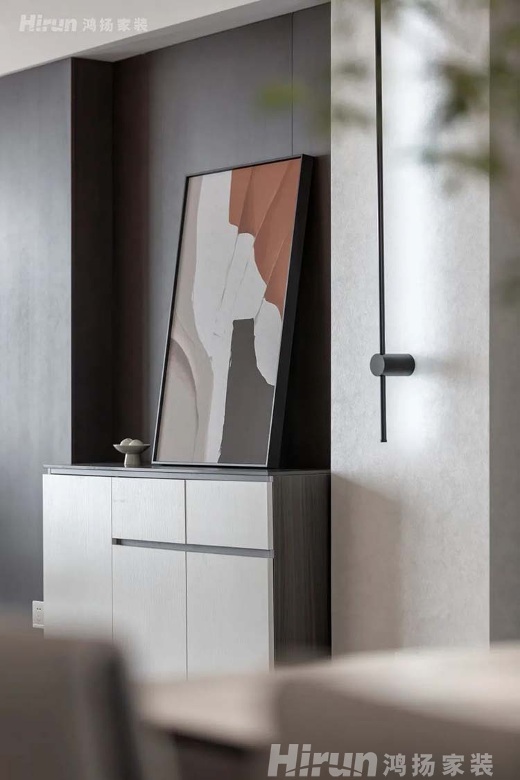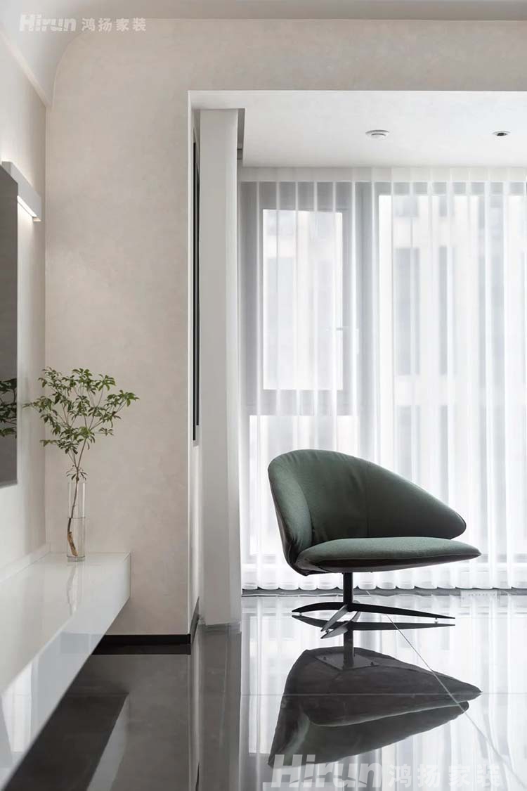 皮質座椅、北歐旋轉沙發、極簡的茶幾、時尚抽象裝飾畫,每一件家具的選擇,都無不配合著房屋整體的設計,讓家更加整體,同時無聲地詮釋著業主的高品位。