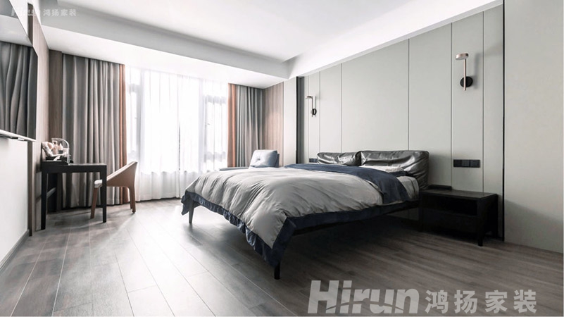 背景墻處隱形門的設計,將次臥完美的“藏”了起來,保證空間的整體統一,視覺上更加的美觀。
