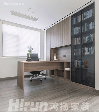 書房的書柜以及書桌均為量身定制,根據家庭成員的不同的閱讀習慣分類分區存放書籍、雜志、書畫等,并設有家庭照片、旅游紀念品和家庭成員的獎狀獎杯的展陳位置。