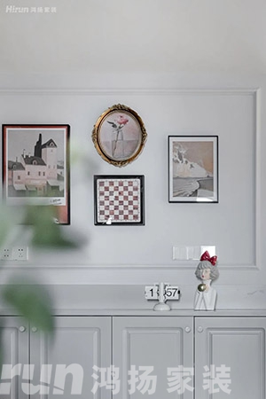 白色漆面的柜面設計使得儲物柜與空間相互交融,毫不突兀,精致的擺件氤氳時尚氛圍,搭配上創意十足的裝飾畫,清新淡雅,初遇時刻,讓人打開房門便眼前一亮。