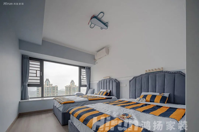 被藍色海洋包圍的空間,童趣滿滿的同時,也能培養孩子理性穩重的性格,同樣,黃色用作點綴,使得空間活力滿滿。