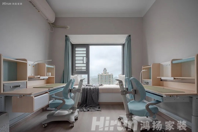 書房設置兒童書桌,飄窗定制軟墊,設置兒童學習陪伴區。